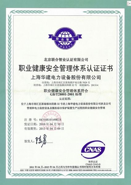 职业健康安全管理体系认证单位