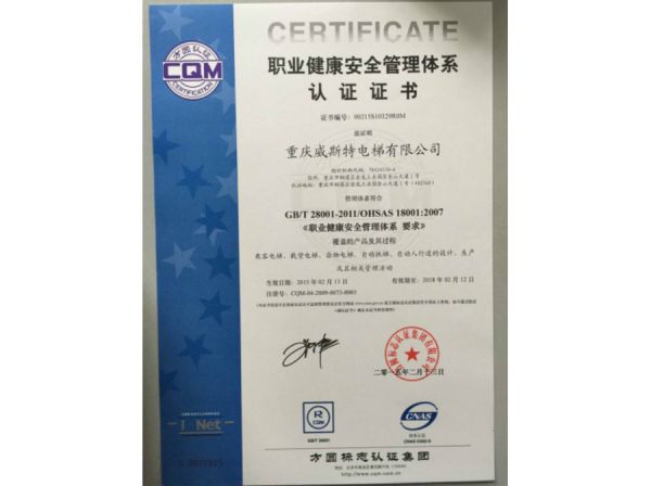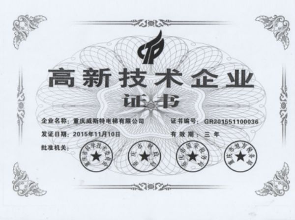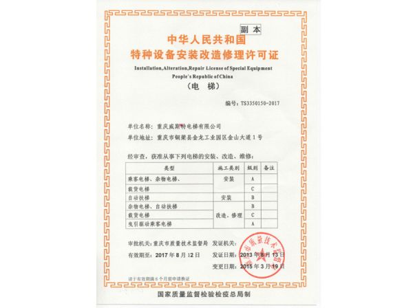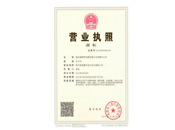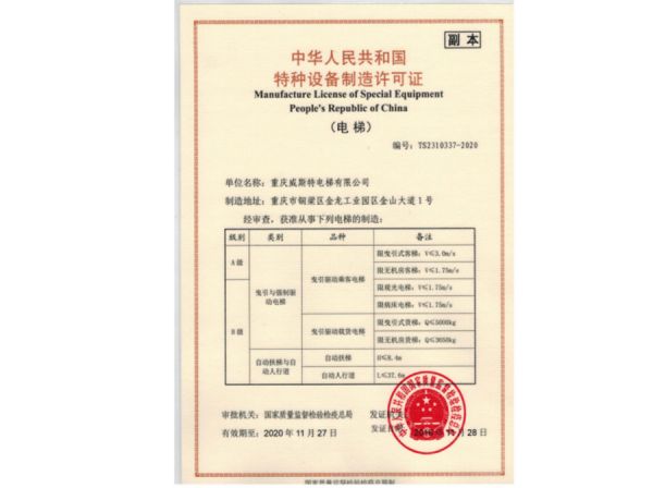| 持证单位: 重庆威斯特电梯有限公司 |