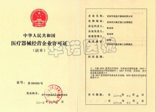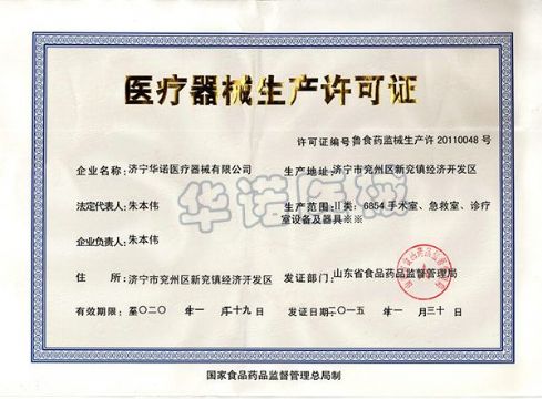 | 持证单位: 济宁华诺医疗器械有限公司 |
