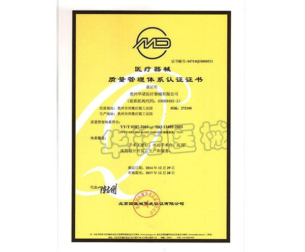 | 资质单位: 济宁华诺医疗器械有限公司 |