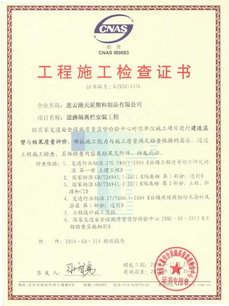 工程施工检查证书