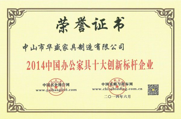 产品名称: 2014中国办公家具十大创新标杆企业 |