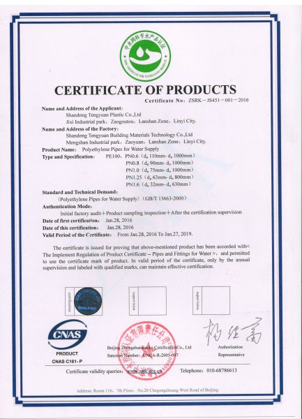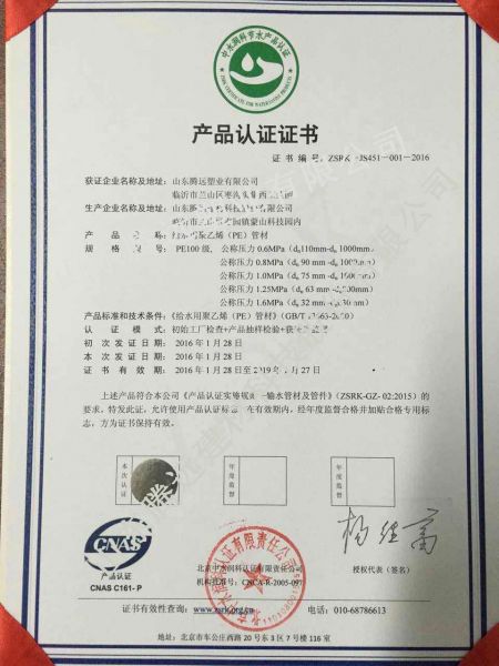 PE产品认证证书