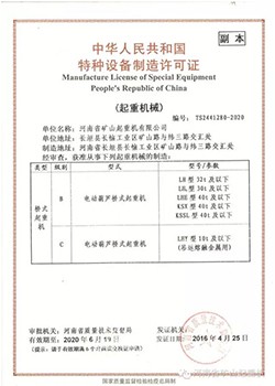 产品名称: 电动葫芦桥式许可证 |