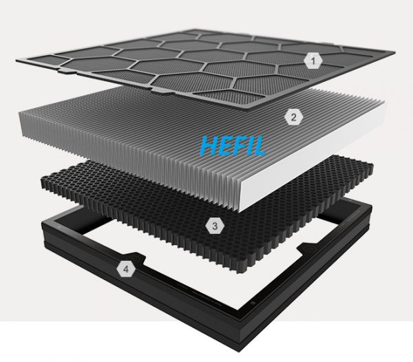 ③ 椰壳活性炭滤网:甲醛、苯、TVOC等有害气体去除率高达90%;活性炭填充量达70%,整个滤网厚达4.5CM,重量接近3斤,可谓用料十足,吸附效果更好。